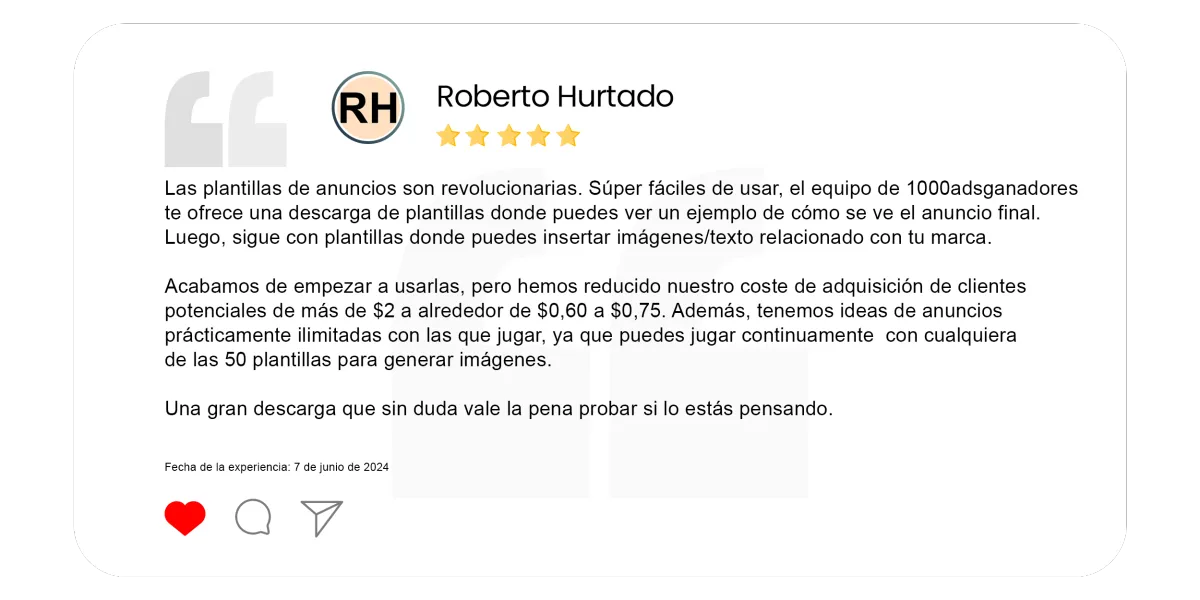 ¡Claro que sí! Vamos a lanzar un canal de Discord exclusivo para nuestros usuarios, donde presentaremos 5 nuevas plantillas de alta efectividad cada mes. Además, este canal servirá como una plataforma para responder preguntas, ofrecer feedback sobre tus anuncios y mucho más. Esta iniciativa asegura que tengas acceso constante a lo último en diseño de anuncios, manteniendo así una ventaja competitiva.